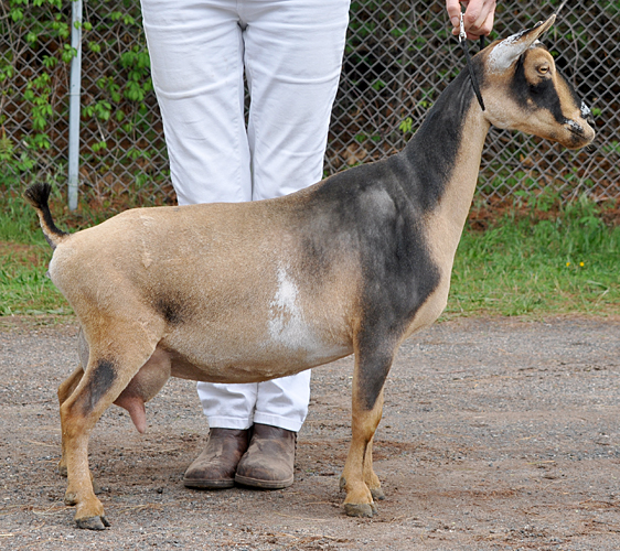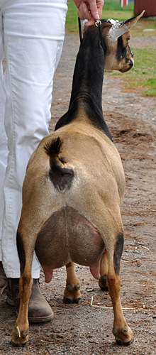 Carnival is a doe with an unfortuntely strong mothering instinct...if there is a kid available, she will happily feed it. If I had figured that out much sooner, both her milk record and her show career would have gone much better. She does have very strong general appearance, and I hope with another freshening she will fulfill the promise of that strapping body.