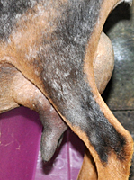 Kiora is a tiny little doe, probably a throwback to her paternal great grand dam, Harlequin, who was a towering 17 inches tall--but it is still a bit surprising given that her dam Liliana is bumping the stick ¯\_(?)_/¯. She ks very sweet, though, with very nice udder attachments, and solid general appearance. Another to keep a daughter or two from, if she would grace me with one.