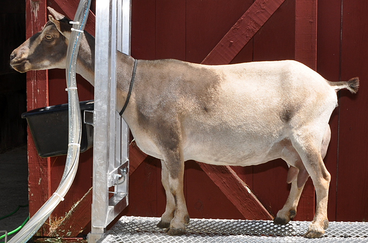 Fiona was the result of a "clean-up" breeding that resulted in several father/daughter offspring. Probably as a result, she is rather petite, but when she finally freshened a few months short of her 4th birthday, she proved to be well worth the wait. This polled doe has a particularly sweet personality. More photos and information here.