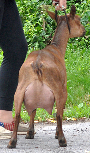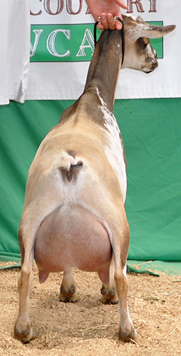 Carnival is a doe with an unfortuntely strong mothering instinct...if there is a kid available, she will happily feed it. If I had figured that out much sooner, both her milk record and her show career would have gone much better. She does have very strong general appearance, and I hope with another freshening she will fulfill the promise of that strapping body.